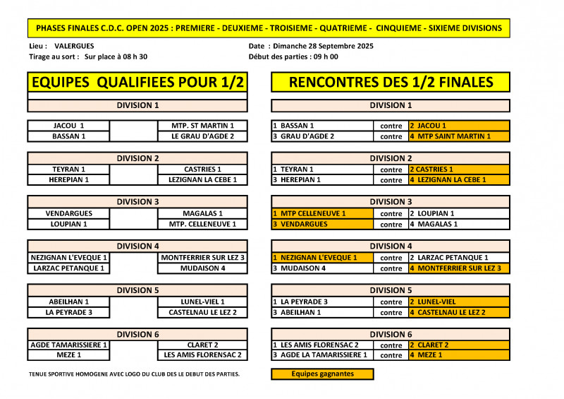 Tirages Quarts de Finale à jouer le 12/09 à 18h30